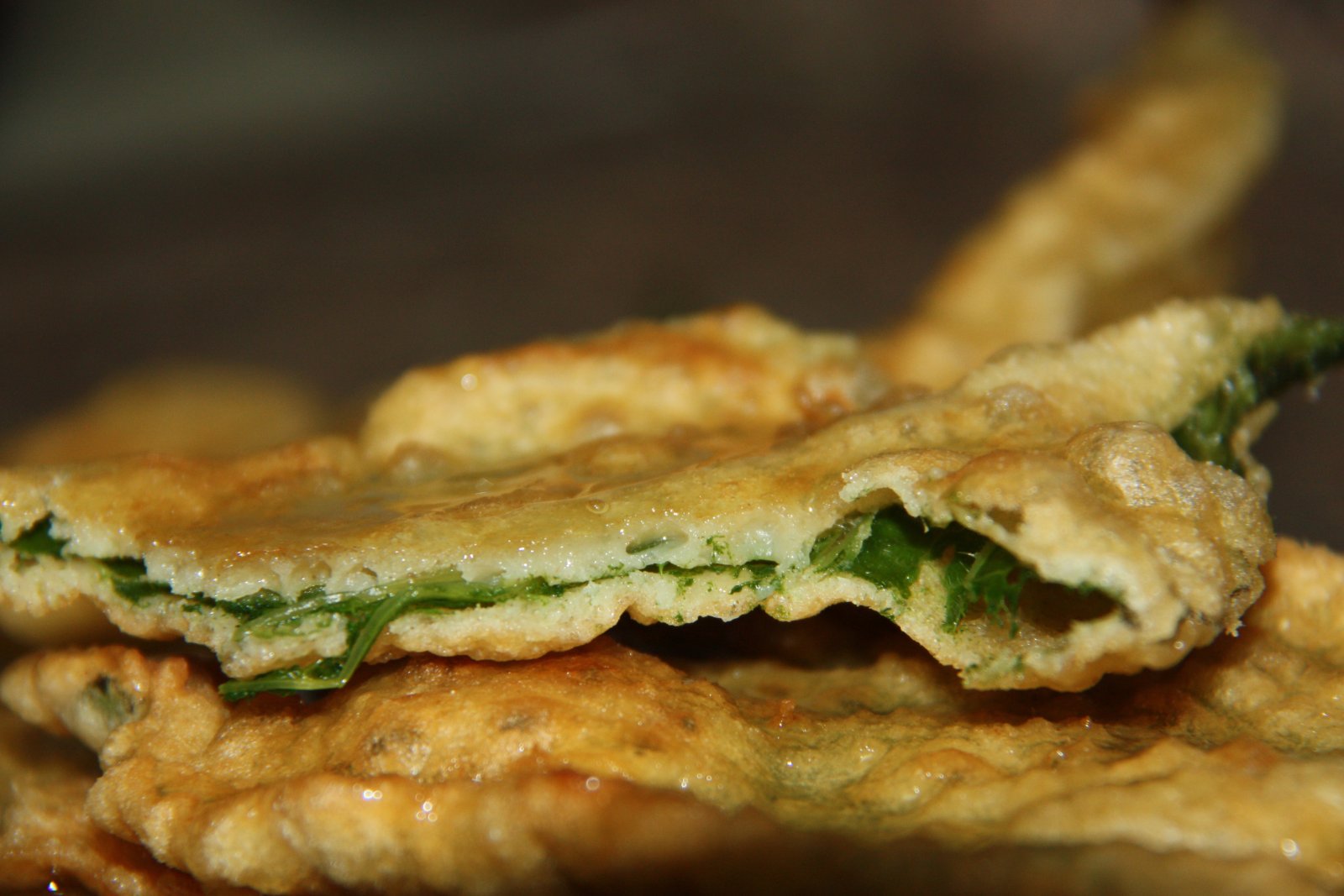les fulles de borraina en la pasta i les fregim en oli ben calent (es